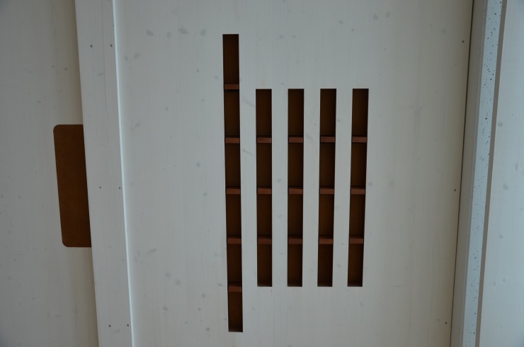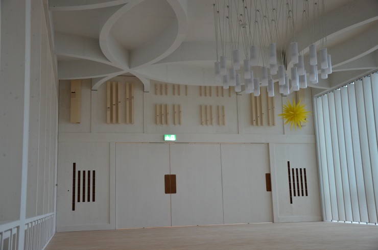 In Zusammenarbeit mit dem Architechturbüro Patrick Thurston und dem Organisten/ Komponisten Hans Eugen Frischkecht entstand ein sehr spezielles Instrument. Zwei Pfeifenreihen erklingen vom „Himmel“, der sehr schön gestalteten Decke des Raumes. Die Pfeifen können mittels arretierbarer Spieltasten in verschiedenen Kombinationen zum Tönen gebracht werden. Durch die Reduktion von 12 auf 5 Töne pro Oktave (Pentatonik) entstehen interessante Klangcluster, die auch wechselnd im Dialog mit zwei Spielern improvisiert werden können.