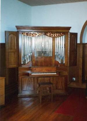 Umfang C - f ''' . Späte Emmentaler Hausorgel aus dem 19. Jahrhundert, von Johan Müller (1808 - 1880), Buchholterberg, Gysenstein. Nach mehrmaligen Umbauten, Rekonstruktion und Restauration der Orgel 1996.